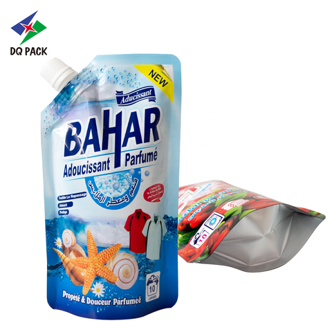 Feuchtigkeitsbeständiger Flüssigwaschmittel-Doypack-Beutel aus Kunststoff mit Ausgießer und Standboden