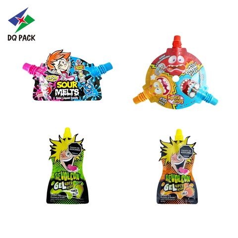 ถุงเติมน้ำสำหรับบรรจุลูกอมเหลวสำหรับน้ำผลไม้พิมพ์แบบตั้งพิมพ์ลายแบบกำหนดเอง
